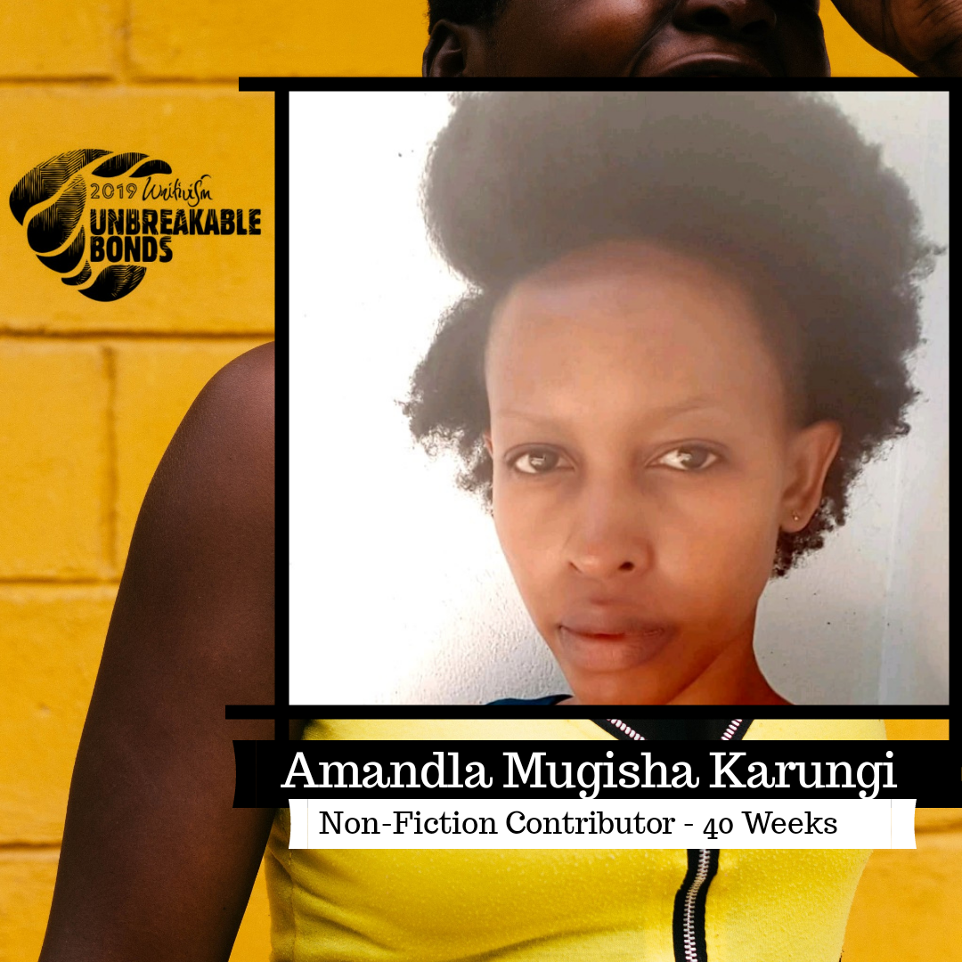 Amandla Mugisha Karungi is a wife and mother. She spends her weeks working as a Legal Associate in a commercial law firm. She spends 90% of her time thinking of things she wants to put in ink, things she wants to talk about on paper. She is her most authentic self when writing and hopes to write a great novel (or three) soon.
